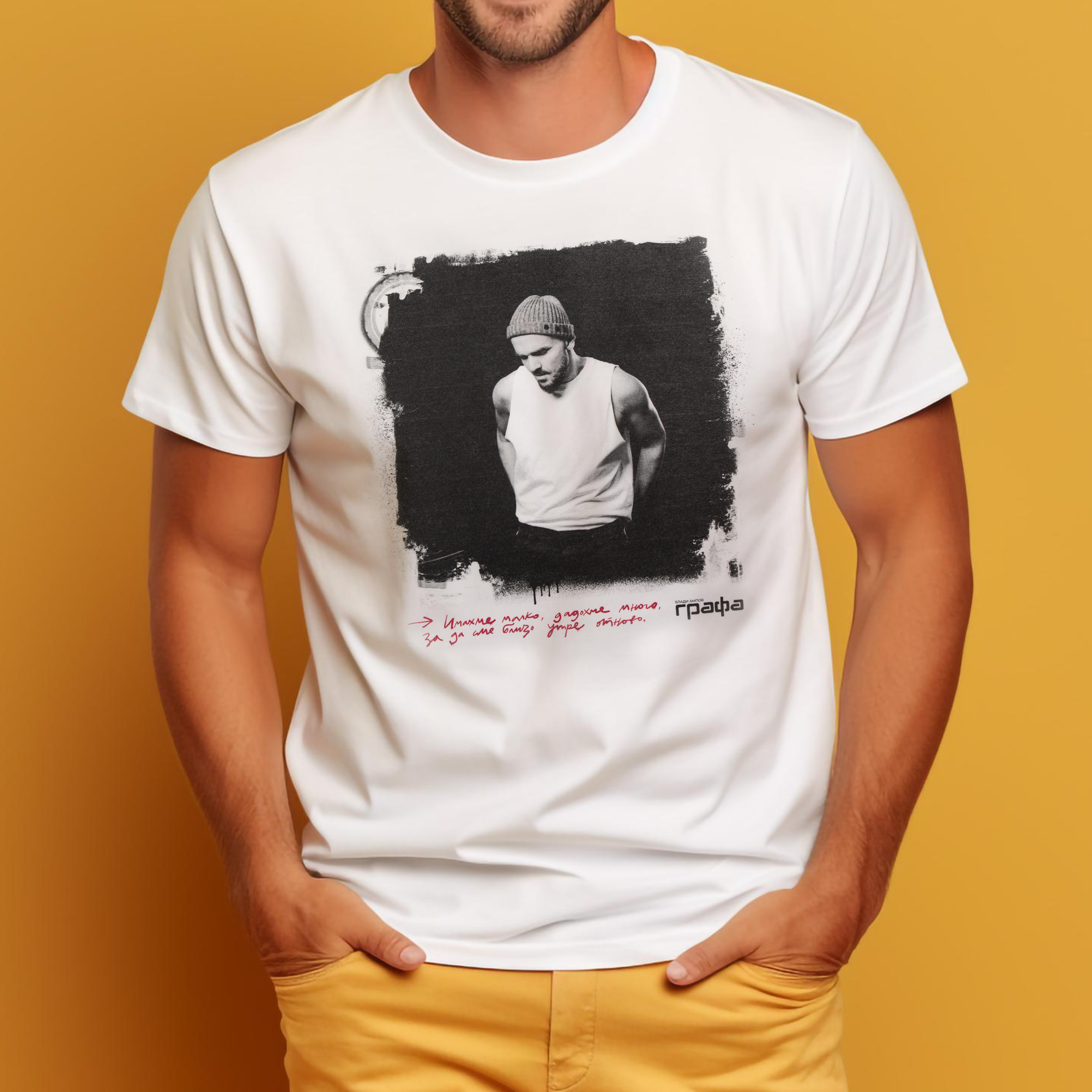 - принт с висока резолюция на дискретен надпис отпред и чист гръб