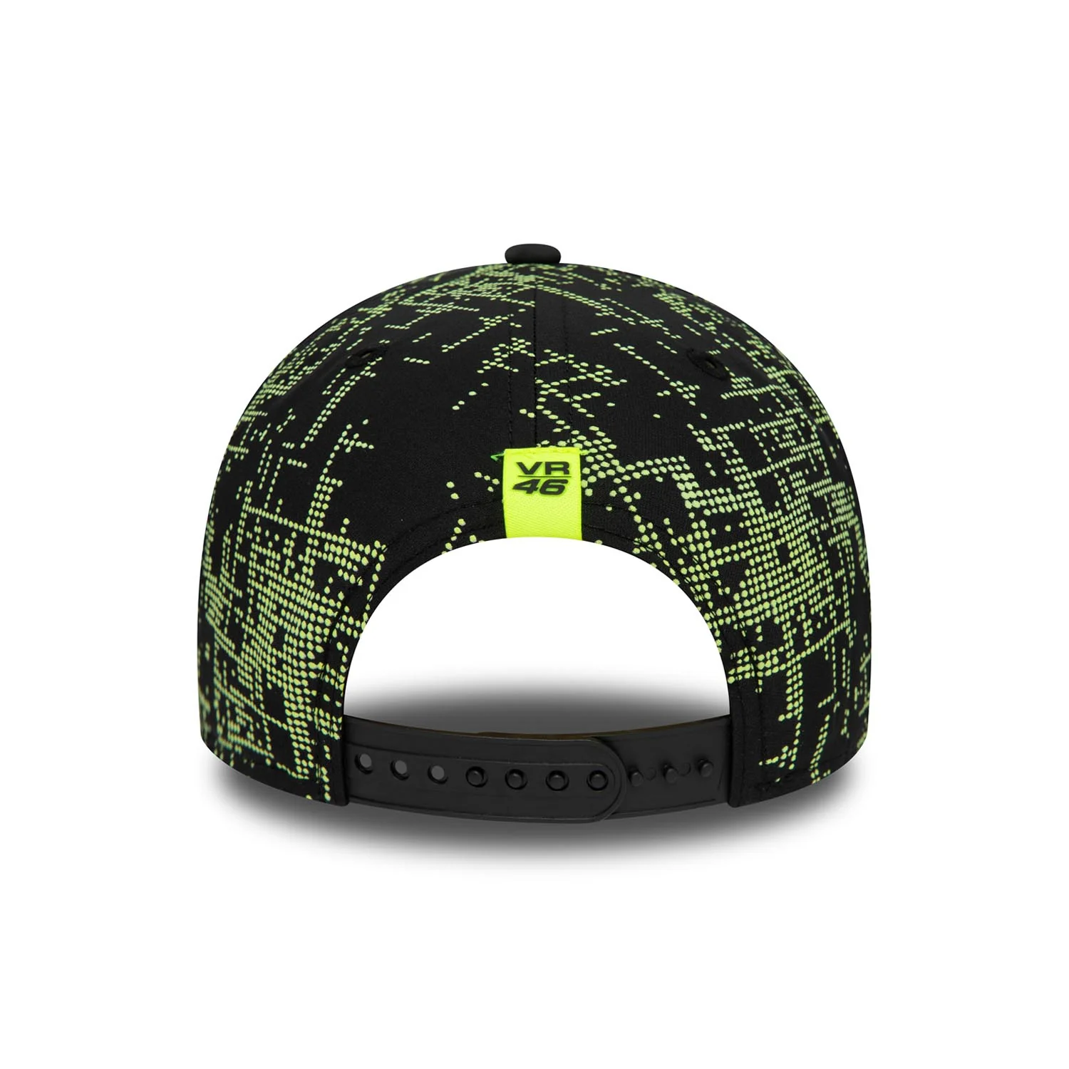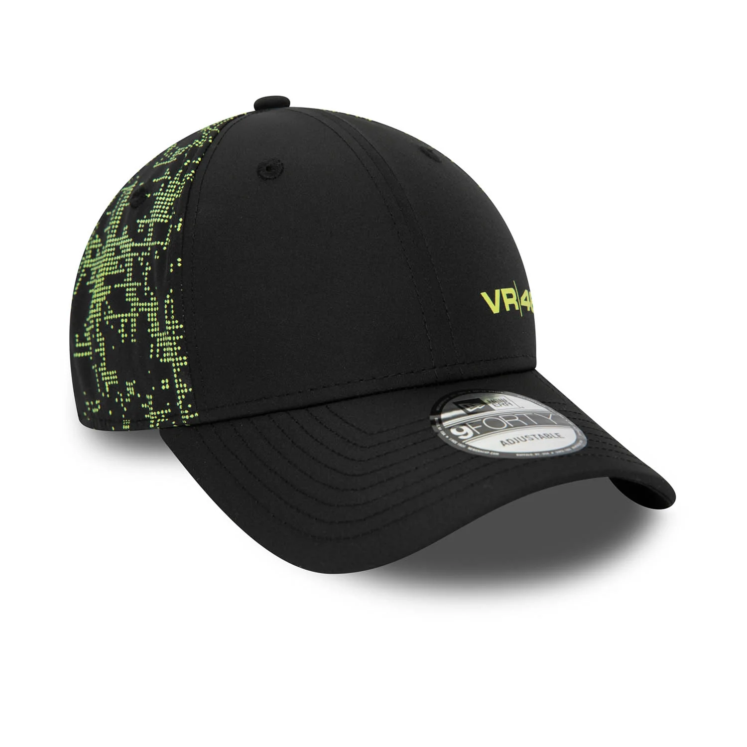 - VR46 надпис отпред, емблематичната бродерия на логото на New Era отстрани